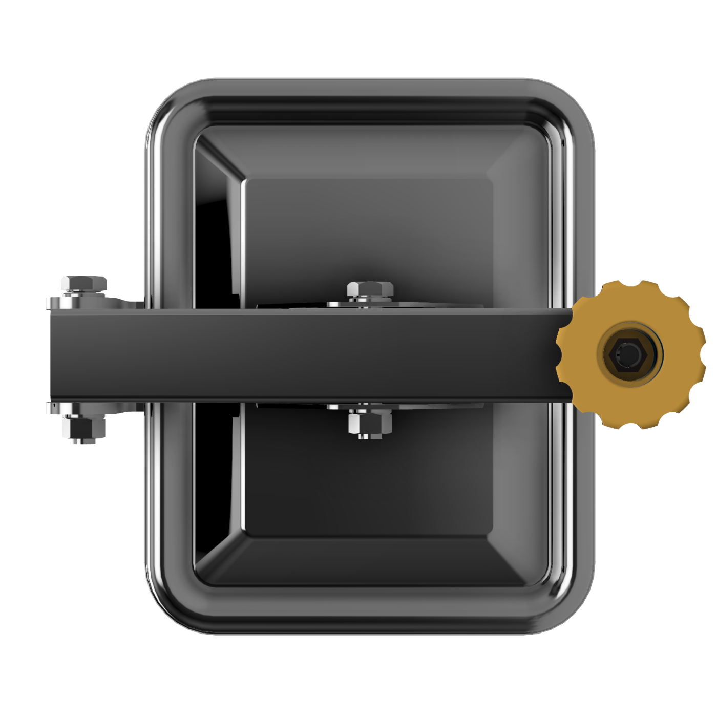 The W2/H stainless steel rectangular manway can be mounted in the side wall or in the roof of the non-pressure stainless steel tank. The hinged cover opens outwards and is pressed by a handwheel. As a standard the manway is equipped with an EPDM gasket and a plastic handwheel.